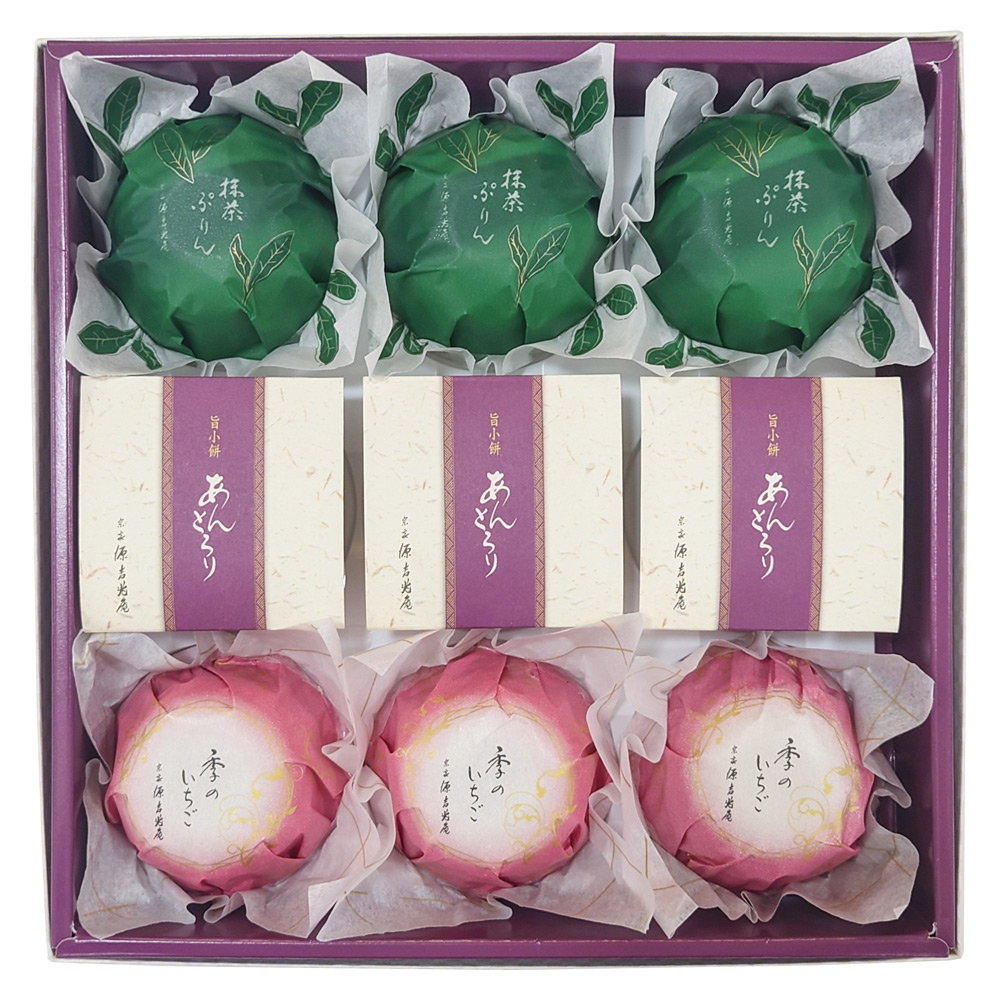 あんとろり×3個、季のいちご×3個、抹茶ぷりん×3個