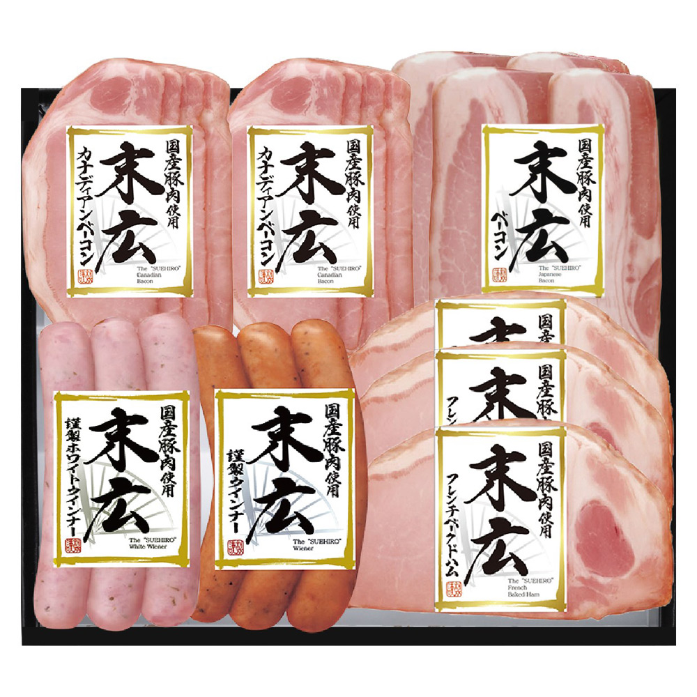 信頼できる国産素材を活かし、製法にこだわった「国産クラシック・末広」ブランドのハム・ベーコンスライスとウインナーの詰合せセットです。