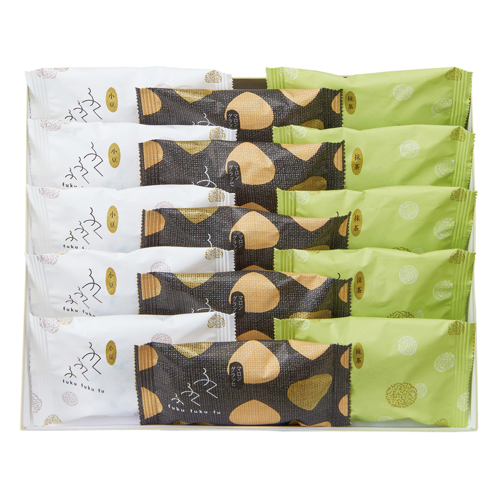 ふくふくふ小豆×5、ふくふくふ抹茶×5、ふくふくふマロングラッセ×5