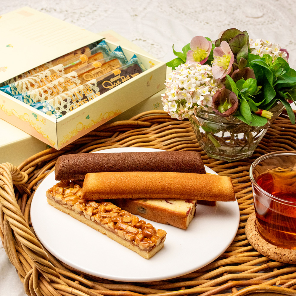 プレーンのバトン×2、メイプル黒糖のバトン×2、アールグレイのバトン×2、抹茶と黒豆のバトン×2、チョコレートのバトン×2、晩柑パウンドのバトン×2、クランベリーパウンドのバトン×2、キャラメルとリンゴパウンドのバトン×2、イチジクパウンドのバトン×2、フロランタン×2 計20本
