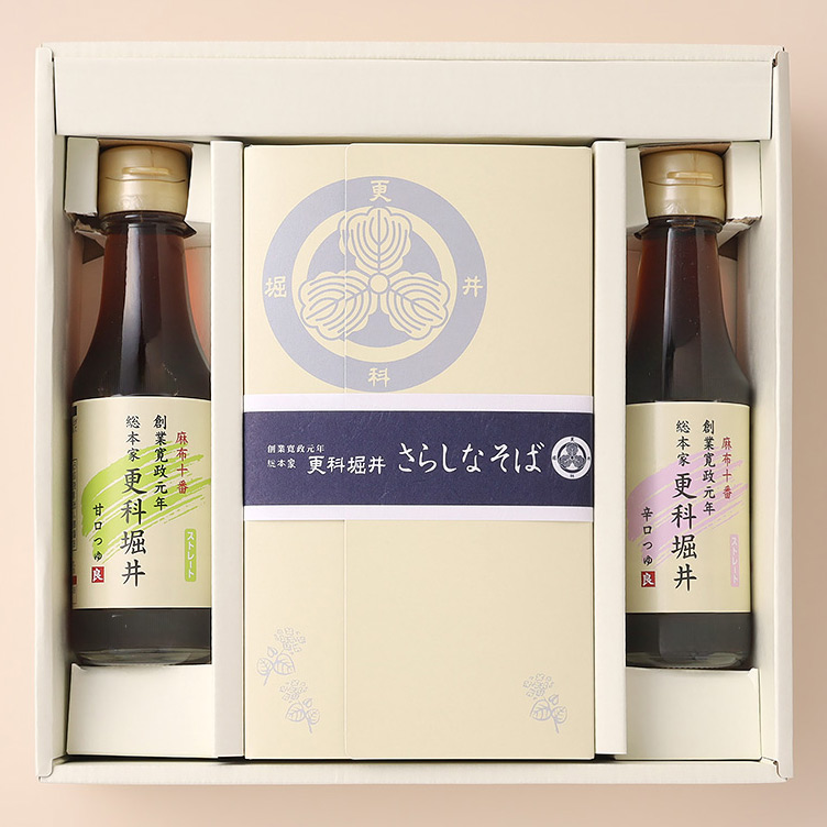 半生更科そば(200g)×2、甘口つゆ(150g)×1、辛口つゆ(150g)×1