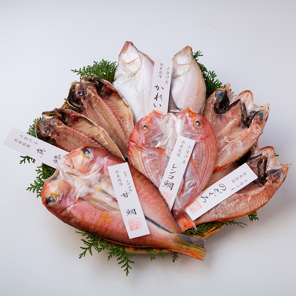 山陰沖で水揚げされた新鮮な天然物を丁寧に甘塩仕立てにほしあげました。一尾一尾、熟成乾燥のため、味・風味とも良く、色合いも綺麗です。