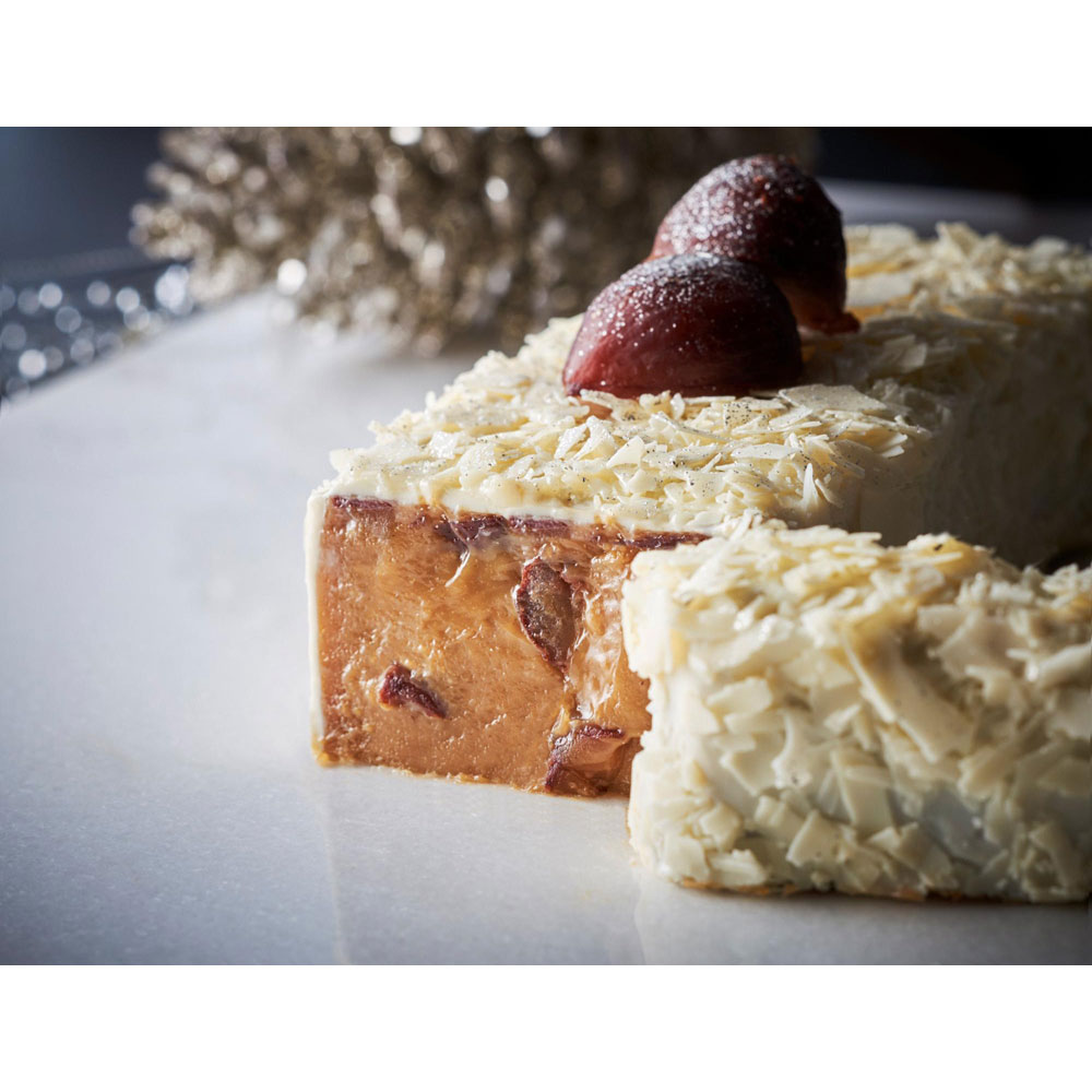【冷凍便でお届けします。解凍まで時間がかかりますのでご注意ください。】<解凍時間の目安:常温で約1時間または冷蔵庫で約3時間>香料や保存料を使用せずに一つ一つ丁寧に手作りした、大人のクリスマスナイトを豊かに演出する贅沢な真っ白いホワイトテリーヌです。スイーツとしてよりも料理の一品としてワインとのペアリングでもお楽しみいただける、素材、食感、風味、見た目の全てにこだわったホワイトショコラテリーヌは特別な味わいが自慢です。