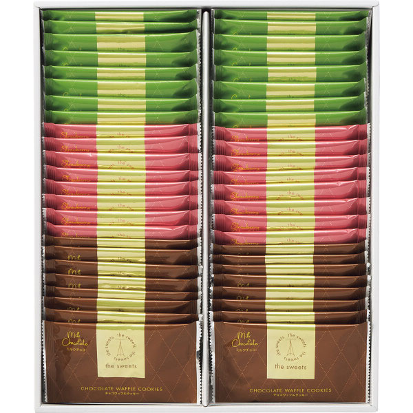 サクッと軽い食感のワッフルクッキーに、3種類のチョコをコーティング。