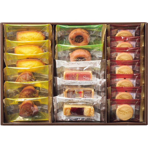 タルト(ショコラオランジュ・りんごとフランボワーズ・ブルーベリーのタルト)×各1、マドレーヌレモン×3、ハートフィナンシェ(キャラメル味)×3、サブレバニーユ×7、ティグレフレーズ×2