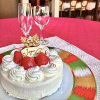 【冷凍便でお届けします。解凍まで時間がかかりますのでご注意ください。】<解凍時間の目安:冷蔵で約6~7時間>ホーソンベリーのスポンジケーキの上にホーソンベリーの生クリームをサンドし、その上にブルーベリーの粒感のあるジャムをサンドし、さらにベリー生クリームをはさみました。天面と周りは白い生クリームでイチゴと柊、チョコプレートを飾りました。ろうそくをお付けいたします。【6月の森スポンジケーキのこだわり】通常材料を撹拌する7割程度にとどめ、あとは肩までの長い手袋をはめて手で撹拌します。こうすることによってスポンジの粗い泡がなくなり指の間から落ちるほどの極限のきめ細かいスポンジケーキが出来上がります。