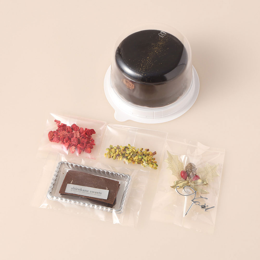 【冷凍便でお届けします。解凍まで時間がかかりますのでご注意ください。】<解凍時間の目安:冷蔵で約8~10時間>美味しい季節のフルーツと、原材料のこだわりがコンセプトのスイーツ専門店<shirokane sweets TOKYO>が作る、香り豊かなペアホールスイーツ ミロワール ショコラ。昼下がりのティータイムのお供として、ディナーのドルチェとしてご利用いただくことで贅沢な気分にさせてくれることでしょう。3号サイズのホールケーキ(2人用)となります。素材を生かした白金ミロワール(ショコラ)です。オーナメントは別添えです。オリジナルの飾りつけをお楽しみください。