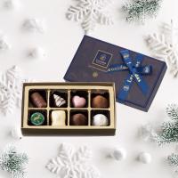 人気のプラリネチョコレートをクリスマスデザインの限定箱に詰め合わせました。クリスマス限定のプラリネと人気のチョコレートを詰め合わせたクリスマス限定の商品です。