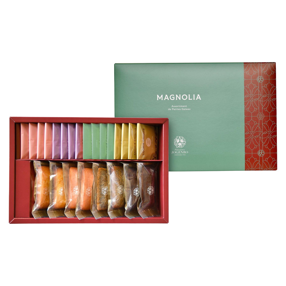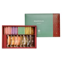 フィナンシェ杏仁×2、フィナンシェ苺×2、フィナンシェチョコレート×2、フィナンシェプーアル茶×2、クッキーリッチバター×4、クッキージャスミン×4、クッキーチーズ黒胡椒×4、クッキーファイブスパイス×4