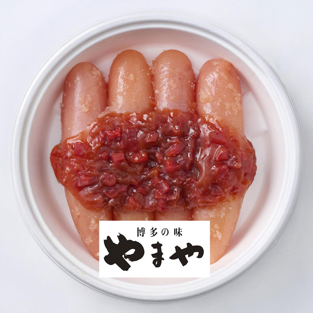 やまやの熟成明太子に紀州南高梅を使用した梅餡をまとわせました。梅のほのかな酸味と香り、やさしい甘みが絶妙な美味しさを引き立てます。とろりとした餡のなかに感じられるカリカリとした食感も楽しめる明太子です。