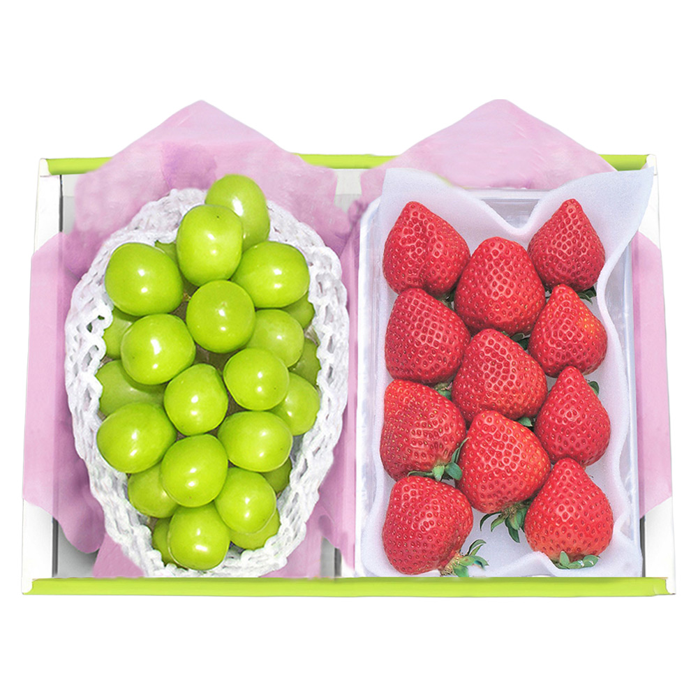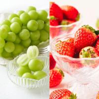 華やかな香りと甘味が楽しめる種無しのシャインマスカットと、香り豊かで、甘味と酸味のバランスが絶妙な苺のセットです。
