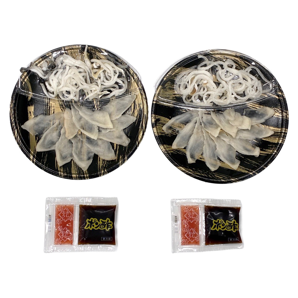 とらふぐ(刺身15g・皮刺身10g)25g×2、ポン酢もみじおろし×2、飛騨牛肩ロースすき焼用150g