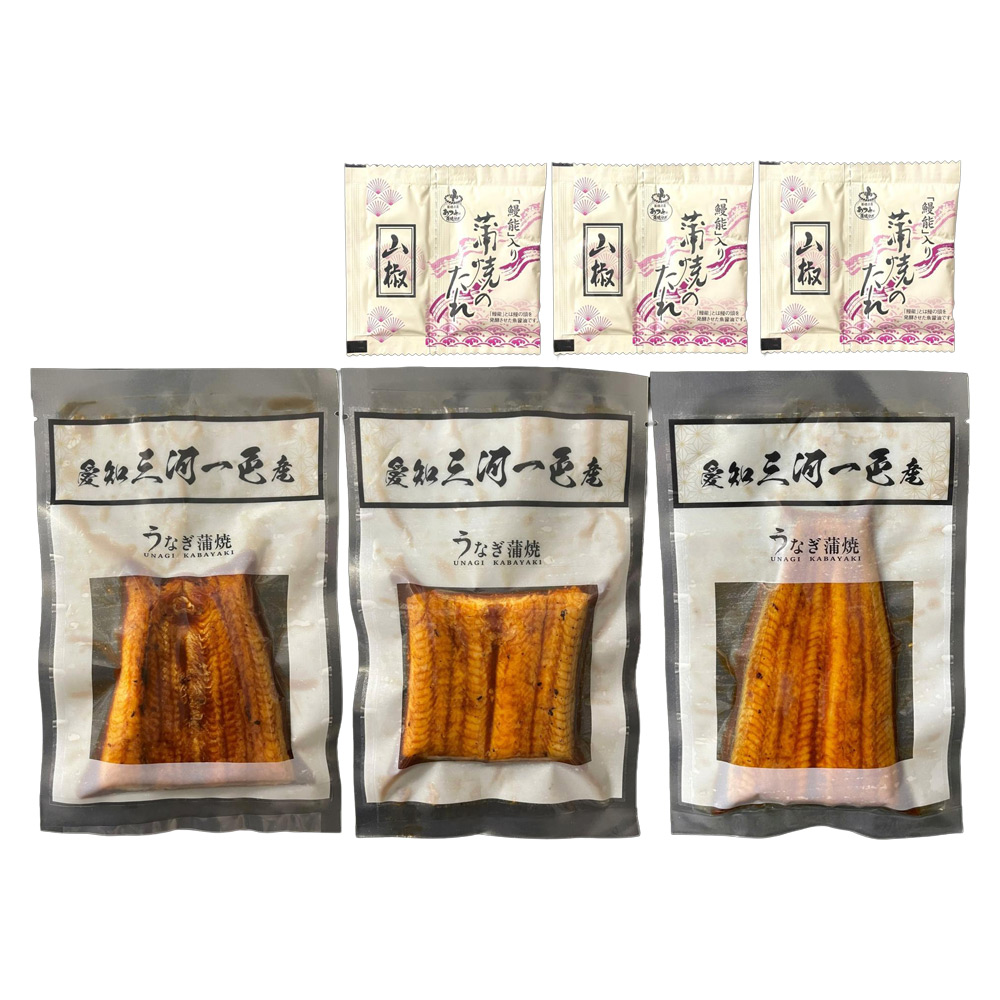 愛知三河一色産 うなぎ蒲焼 50g・山椒付きたれ 各3