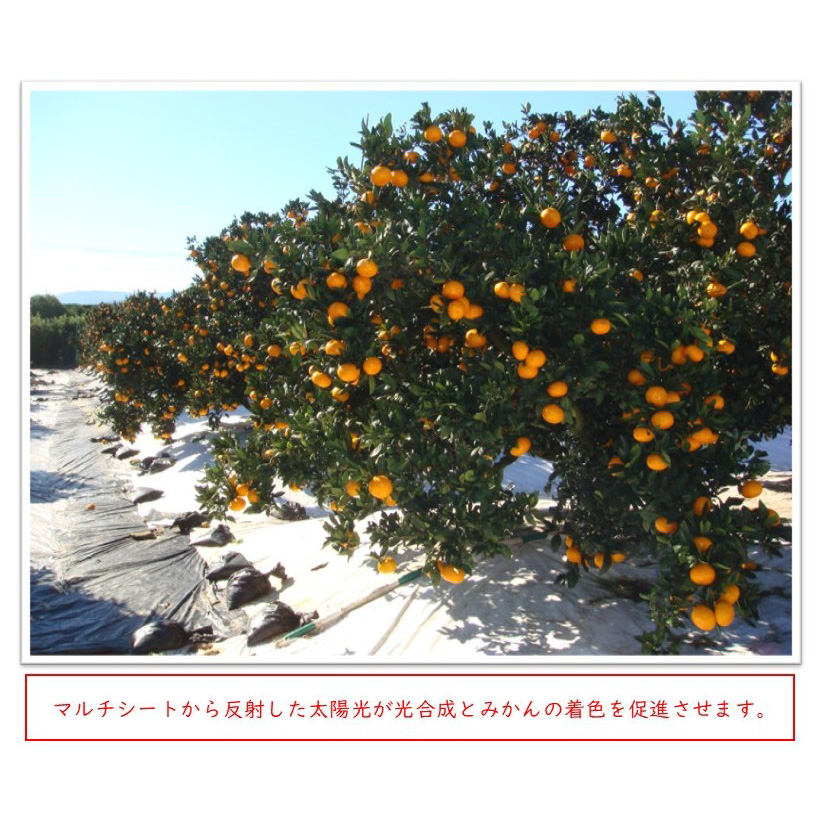 【お届け時期:12月上旬頃から12月下旬頃】園地全面に張ったマルチシート。甘さにこだわり糖度13度以上のみかんを選抜してお届け