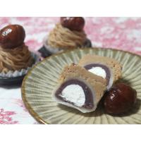 栗の渋川煮をまるごと載せたモンブランケーキのような洋風大福