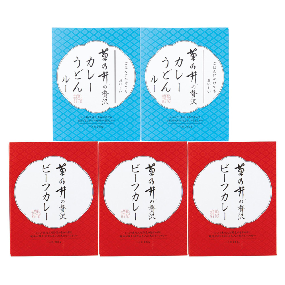 ビーフカレー中辛200g×3、カレーうどんルー200g×2