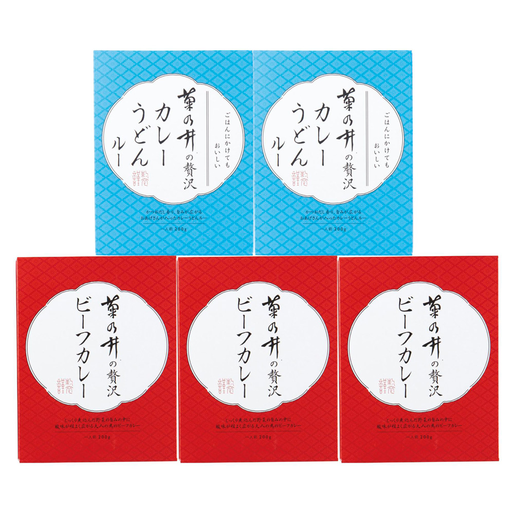ビーフカレー中辛200g×3、カレーうどんルー200g×2