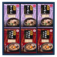 きしめん(半生きしめん100g、めんつゆ25g、かつおかれぶし削りぶし1g)×3、味噌煮込うどん(半生うどん100g、あじみそ50g、かつおだし5g)×3