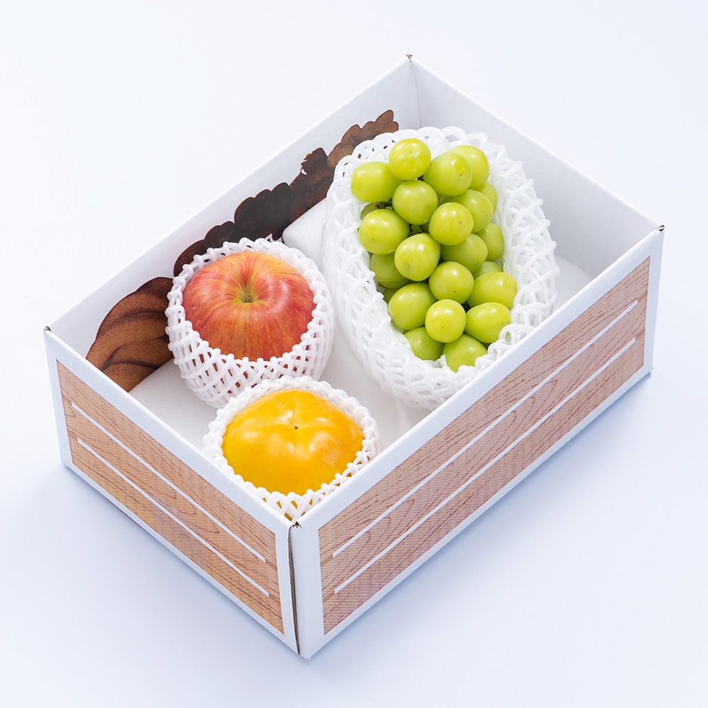 青森・長野県産りんご×1玉、福岡県産富有柿×1玉、長野・山梨・山形・岡山県産他シャインマスカット×1房