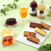 ピュアフルーツジェリー(さくらんぼ、ピオーネ、ラ・フランス各1個)、ストレートジュース(りんご、みかん、ぶどう各1本)、フルーツケーキ5個入(フルーツミックス2個、オレンジ、ショコラマロン、チェリー各1個)