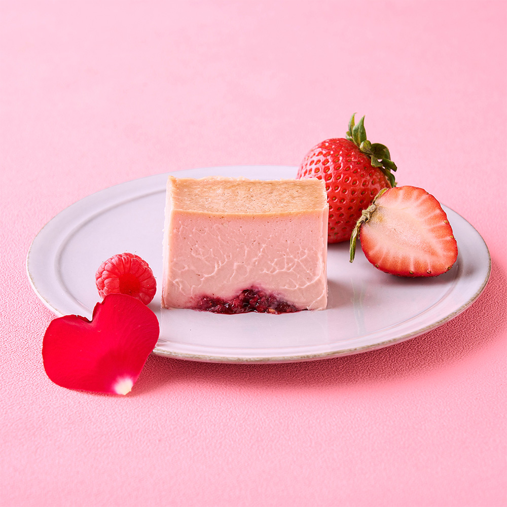 イチゴの芳醇な甘さやバラの香りが調和した甘美なチーズケーキ