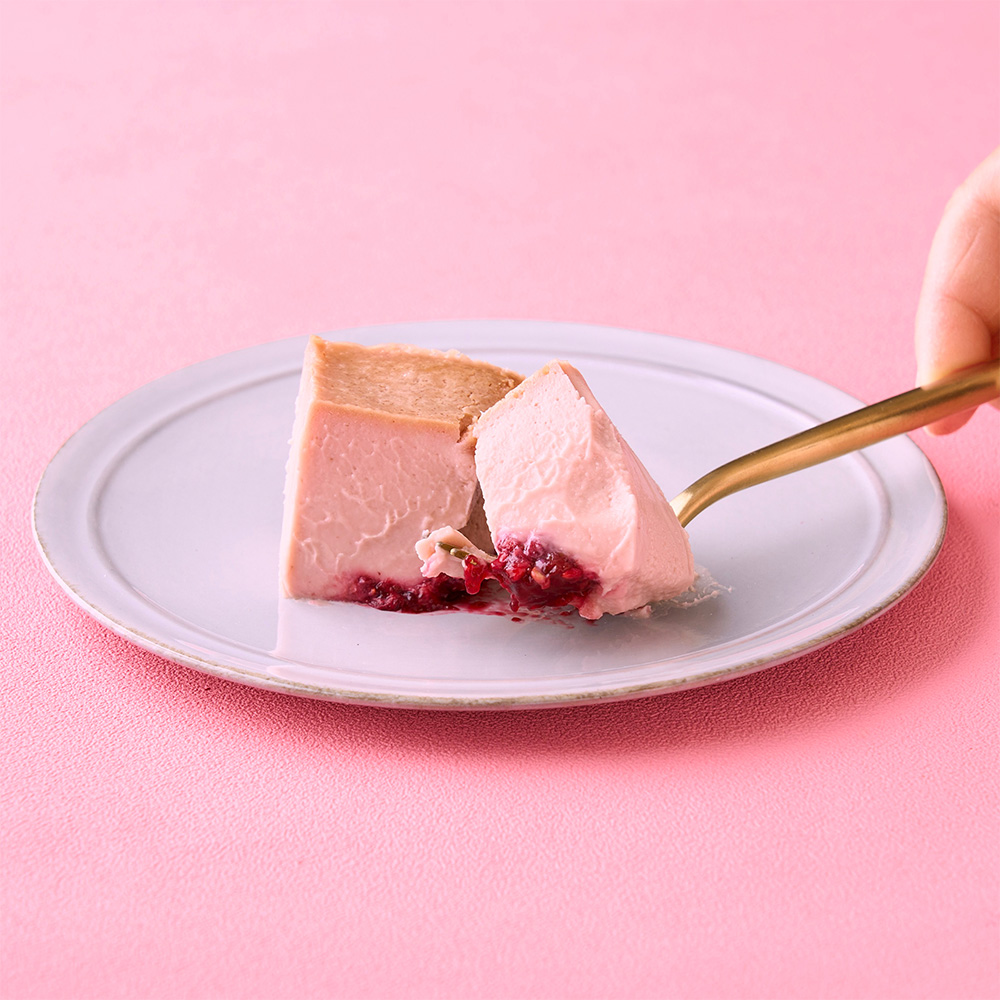<AND CAKE>はパティスリー・サダハル・アオキ・パリに長年在籍した鈴木氏の「こだわりのお菓子をより美味しい状態で味わっていただきたい」という理念のもと、2020年にオープン。出来立ての美味しさを急速冷凍する事で、品質の高いお菓子を全国にお届けしています。芳醇な甘さと香りが魅力的なイチゴと、コクのある北海道産クリームチーズを合わせて上品なチーズケーキに仕立てました。ふわっと広がるバラの香りがアクセントになり、より華やかで高貴な味わいに。イチゴ&フランボワーズの甘酸っぱいコンフィチュールを底に敷くことで、果実がもつ豊かな香りがさらに広がっていきます。また、保形できるギリギリの固さに仕上がるよう配合比率を緻密に計算し、徹底的な温度管理を行うことで、口に入れた瞬間に溶けていくテクスチャーを実現させました。