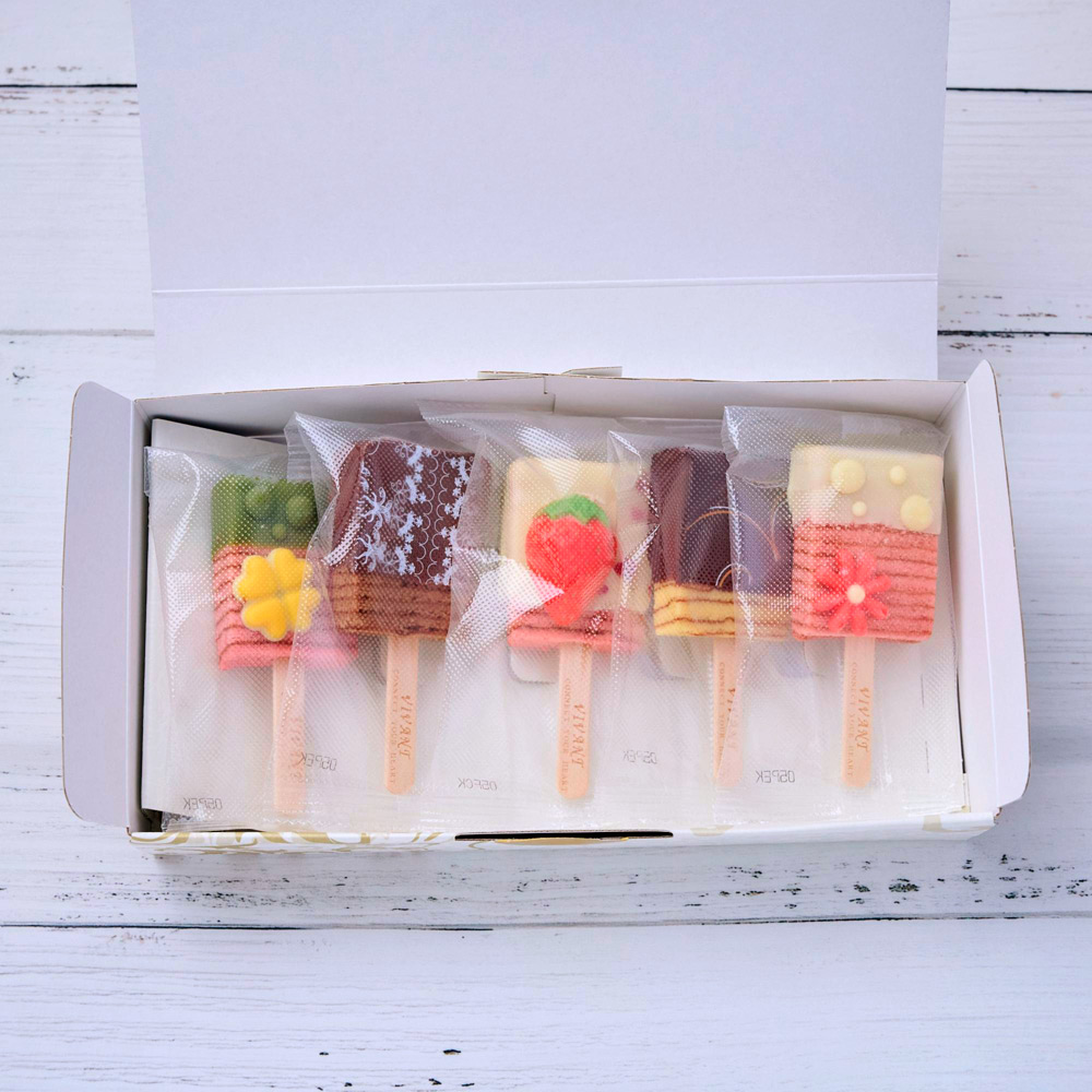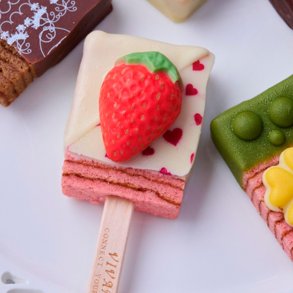 VIVANT BAR(びばぁーんばー):ストロベリー×抹茶、チョコ×ミルクチョコ、ストロベリー×ホワイト、プレーン×ダーク、ストロベリー×ホワイト 各1(バウム×コーティングチョコレートの組み合わせとなります。)
