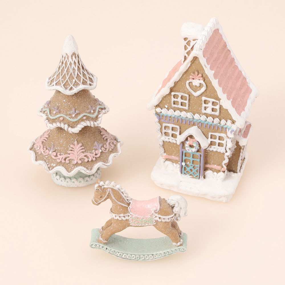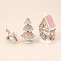 お菓子のようなかわいらしい置物。ハウス、ツリー、ホースの3点セットです。