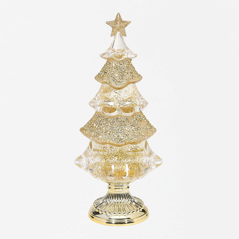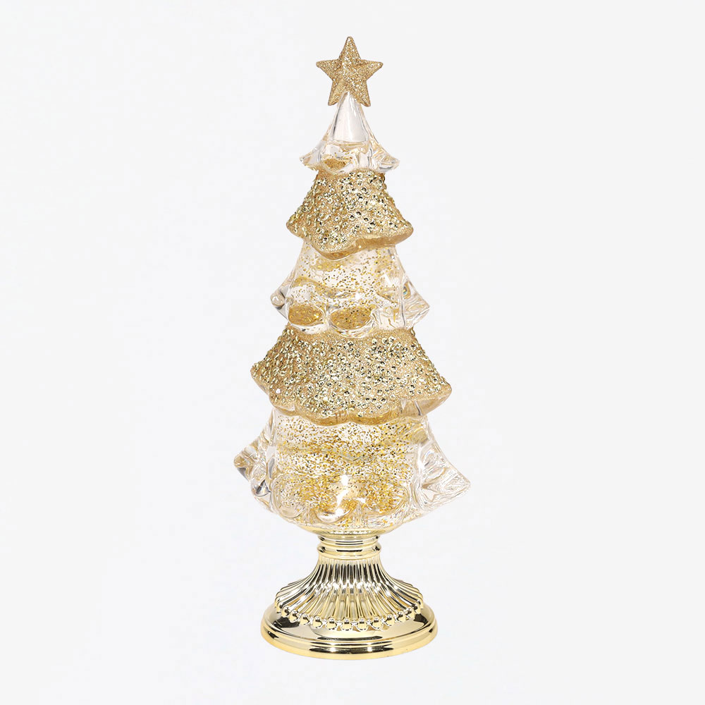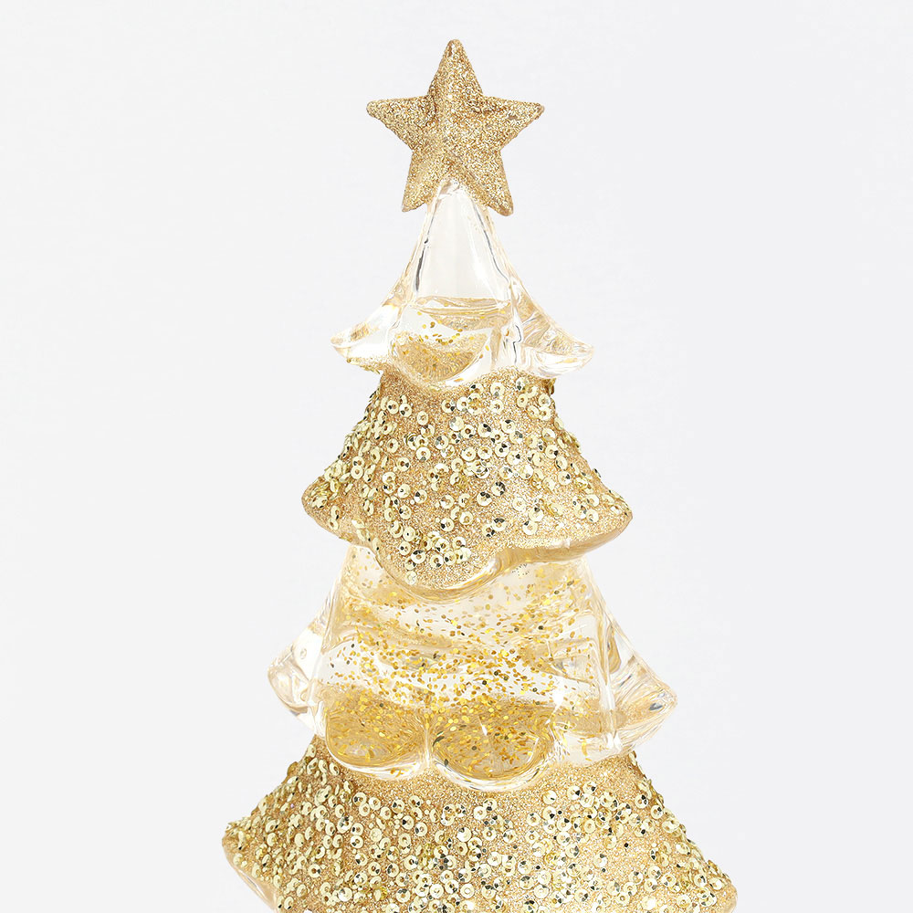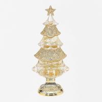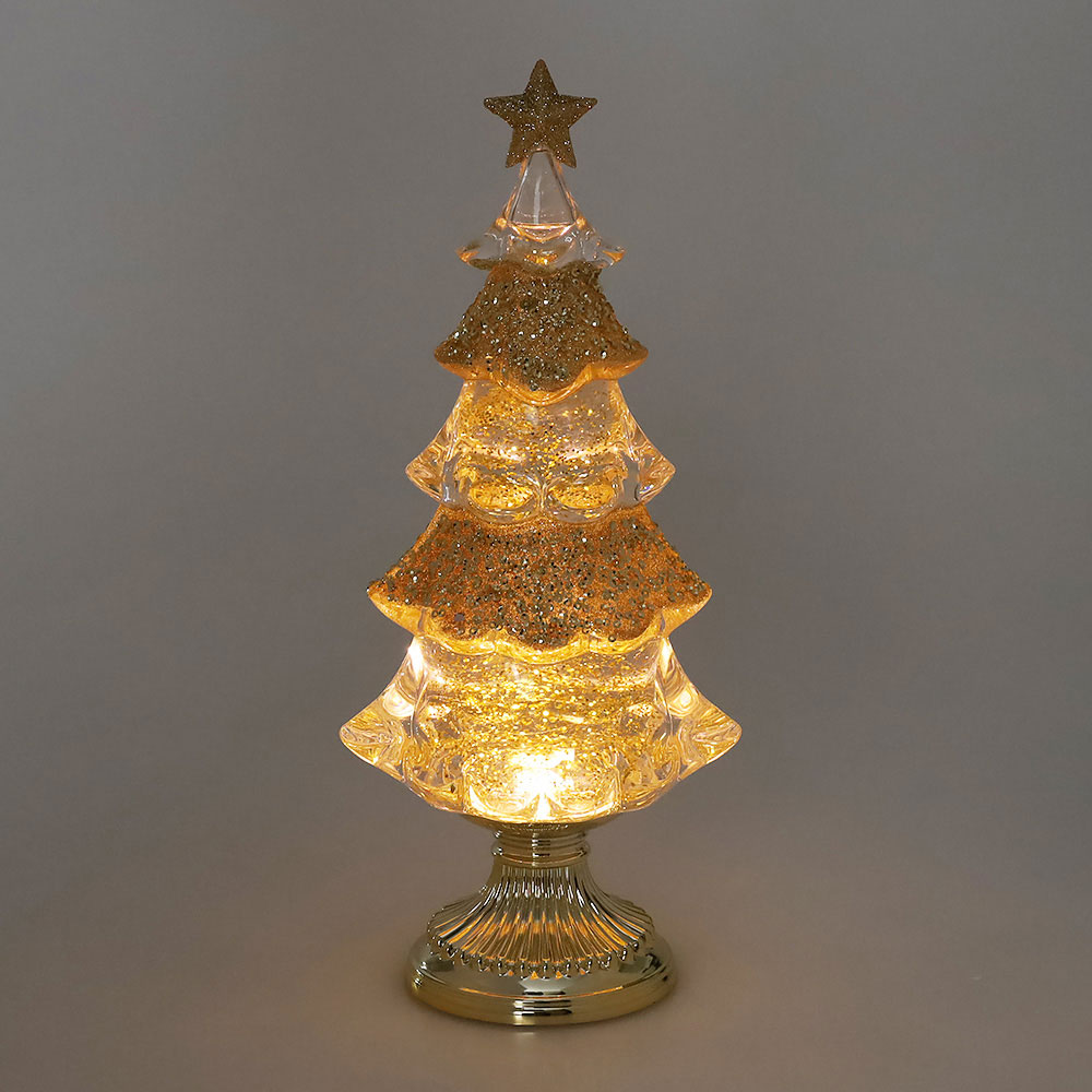 おしゃれなライト付きのオブジェ。点灯するとツリーの中にはゴールドのラメが舞い上がります。点灯していなくても十分楽しめるデザインです。