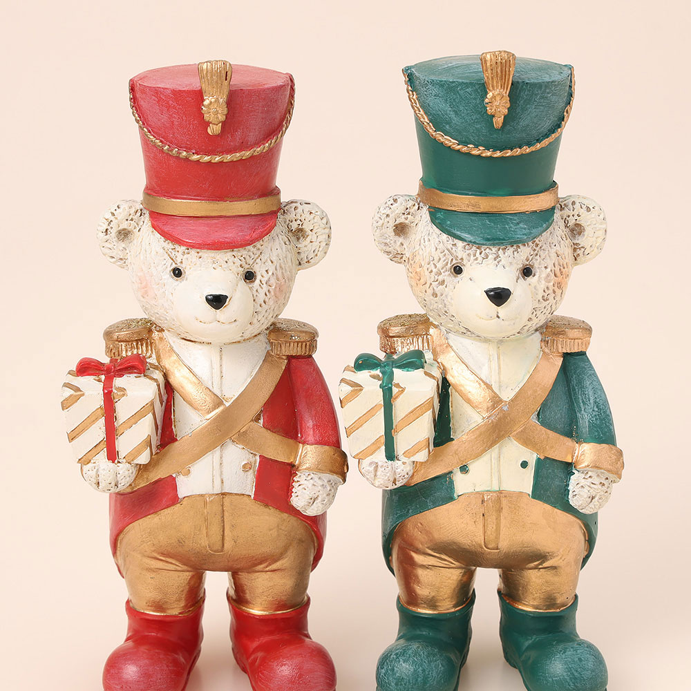 かわいらしいクマのオブジェ2色組。可愛らしいクマさんが、プレゼントを持ってお出迎え。