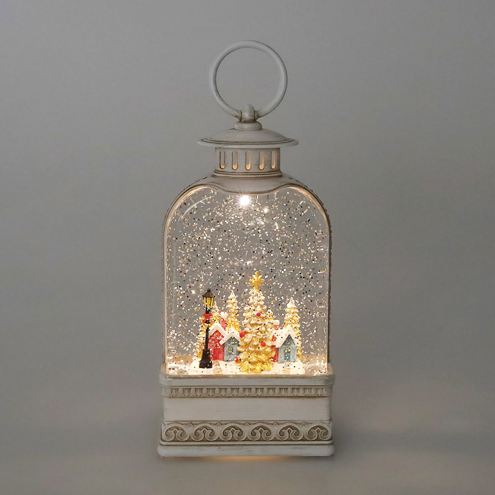 楽しいランタン型スノードーム。クリスマスソング8曲のオルゴール&ライト付。