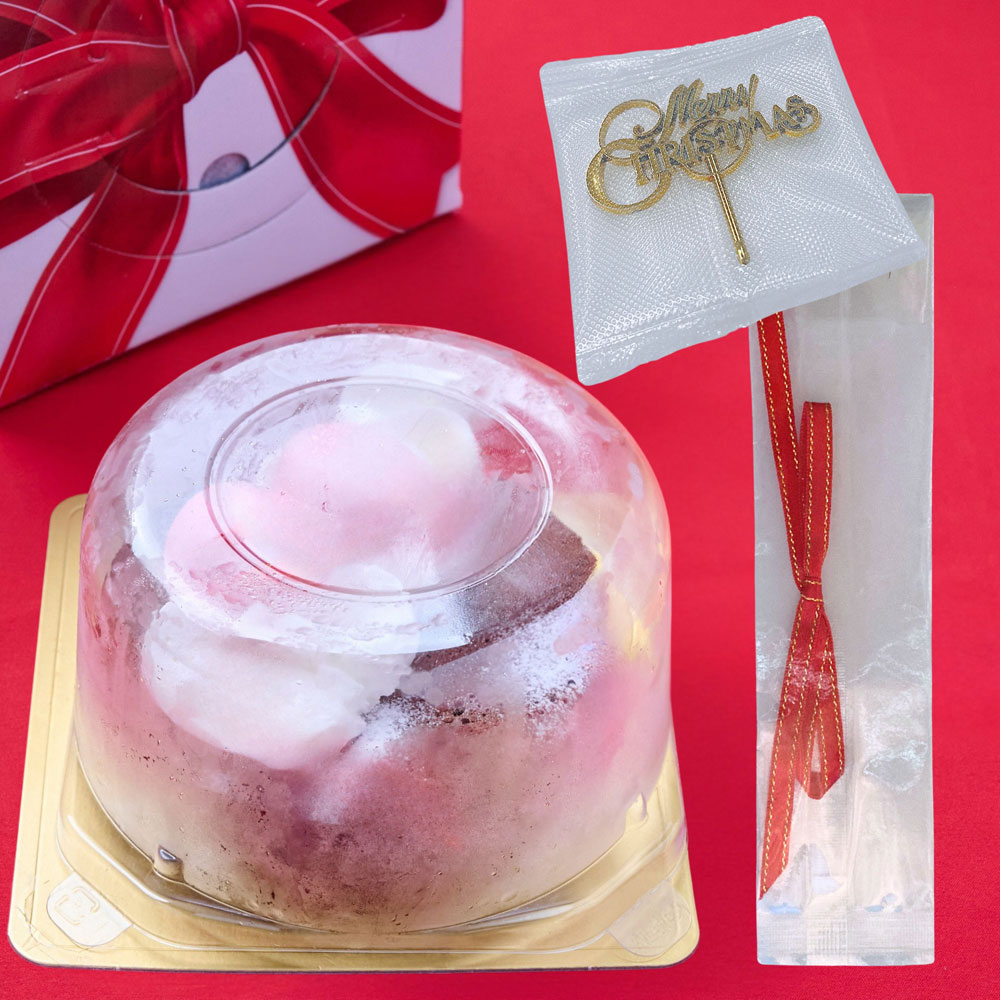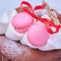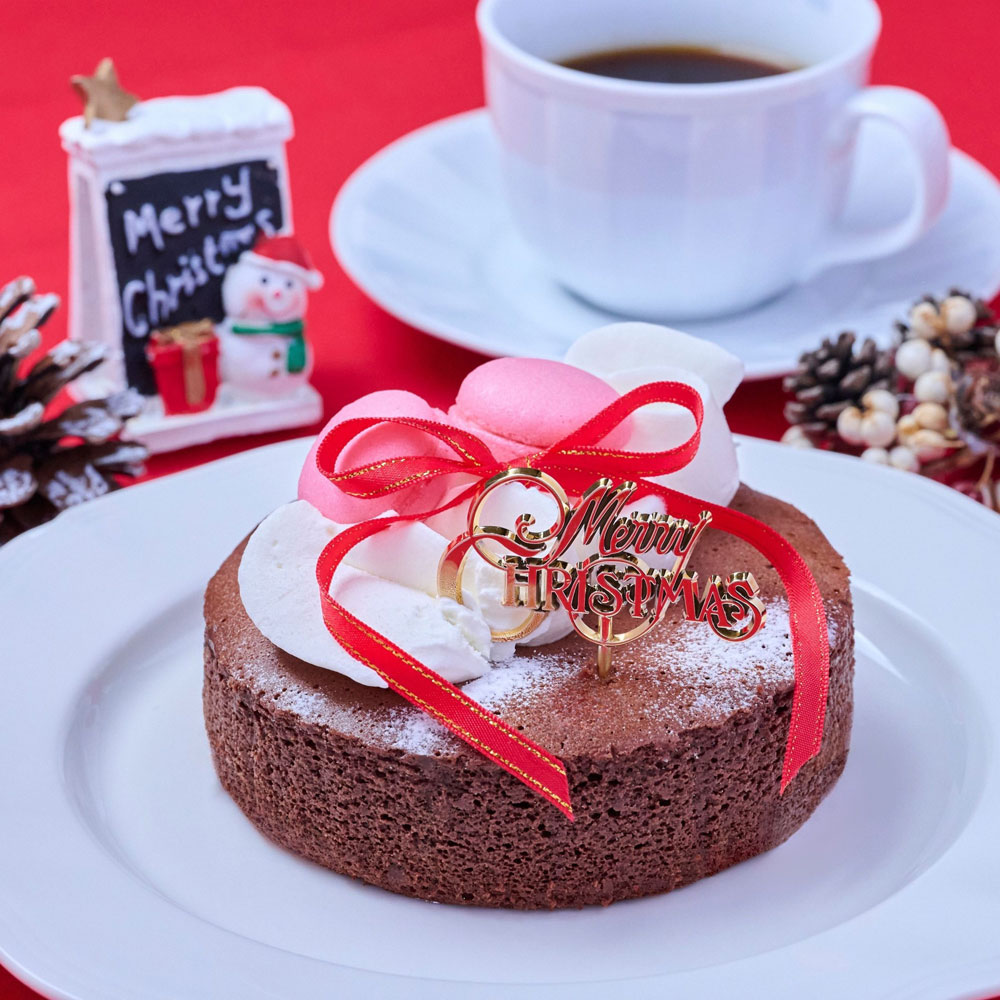 ガトーショコラ4号×1、マカロン(イチゴ)×2、付属品:クリスマスピック×1、リボン×1