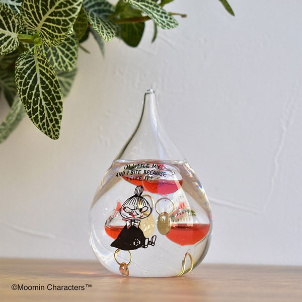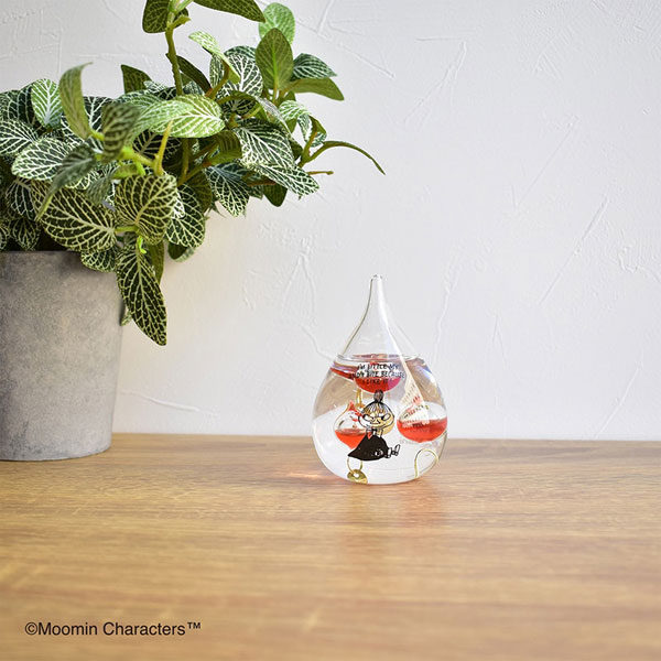 2度刻みで刻印されたゴールドのプレートが現在の温度を示します。リトルミイが好きな方への贈りものにもおすすめです。正確な温度を測るためにはお使いいただけませんが、インテリアオブジェとして球体の浮き沈みや季節での変化を楽しむ事ができます。※温度はあくまで目安です。