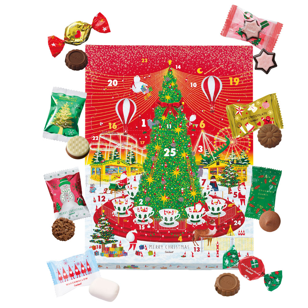 クリスマスエンジョイカレンダー×1、袋入り菓子×3(クリスマスチョコレート&クッキー・クリスマスプレーンチョコレート・クリスマスチョコレートミックス 各1)