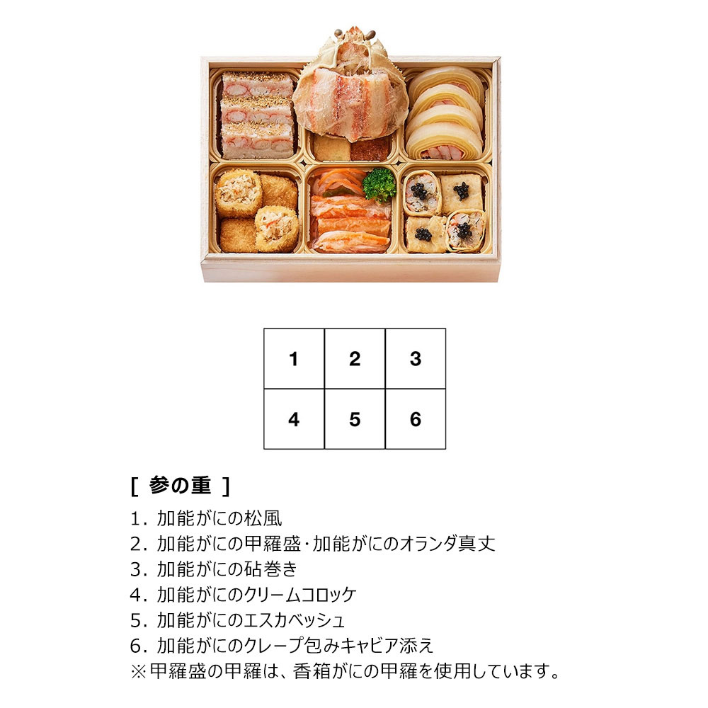 【冷凍便でお届けします。解凍まで時間がかかりますのでご注意ください。】お正月は思いきり贅沢に美食を楽しみたい。そんなご家庭におすすめの三段重です。三重県産松阪牛、静岡県産浜名湖うなぎ、石川県産加能がにの高級食材をふんだんに使用した料理が盛りだくさん。新年のお祝いにふさわしい豪華なオードブル重です。※オンラインストア・タカシマヤ通信販売のみの承りとなります。(高島屋各店でのお取り扱いはございません。)
