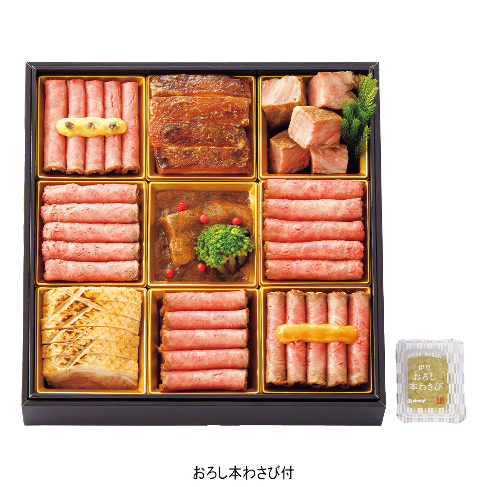 【冷凍便でお届けします。解凍まで時間がかかりますのでご注意ください。】醤油仕立ての合鴨ロースなど和風のものから、赤ワイン漬けのローストビーフといった洋風まで、和洋肉料理を盛り合わせた贅沢なオードブル重です。※オンラインストア・タカシマヤ通信販売のみの承りとなります。(高島屋各店でのお取り扱いはございません。)