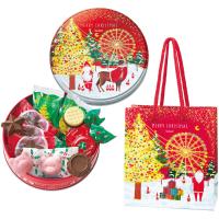 「クリスマスチョコレートミックス」 缶のサイズ(約):直径12.3×3.8cm