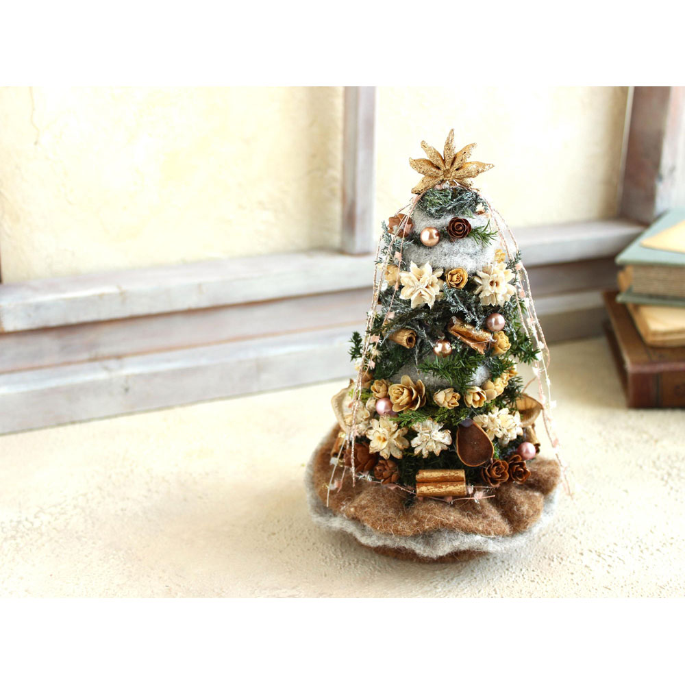 クリスマスの特別な時間を過ごすための小さくて可愛いグリーンとブラウンのミニツリーを大切な人へのプレゼントにもおすすめいたします。