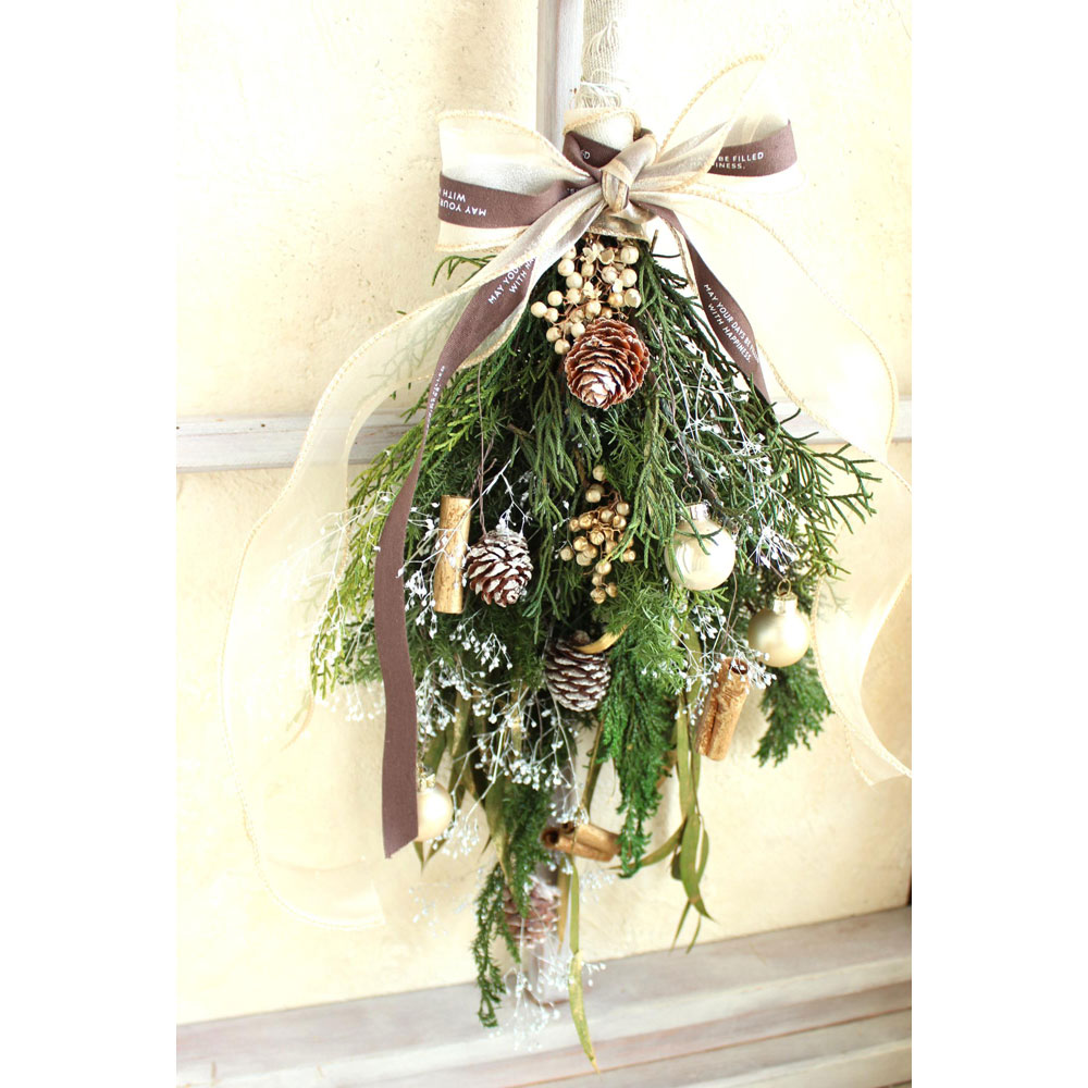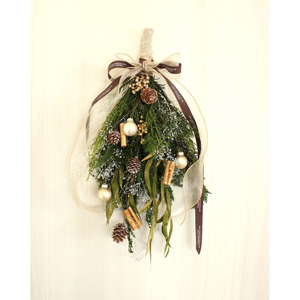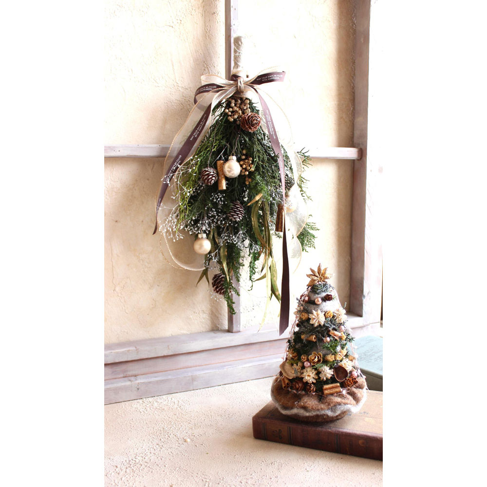 長く飾っていただけるシンプルなデザインに仕上げました。時々実物をプラスして毎年少しずつ変化を楽しんでいただけます。コンパクトサイズなのでインテリアに自然な癒しをプラスします。ミニツリーと組み合わせることでクリスマスの雰囲気がより一層素敵になりGiftにもおすすめです。