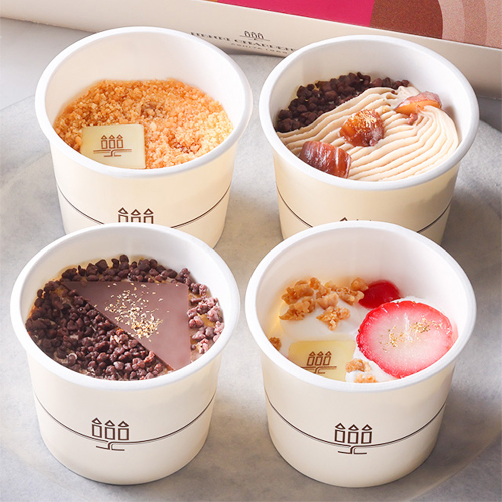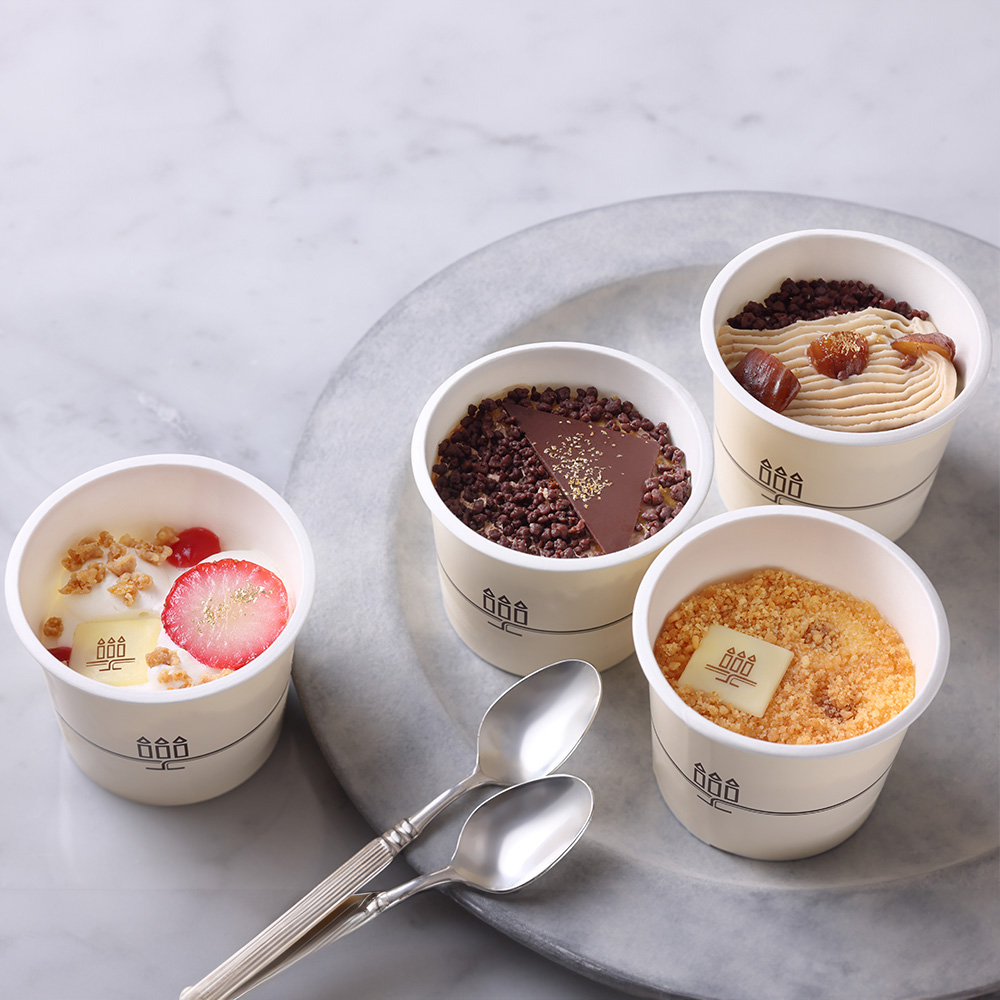 解凍時間の違いによって、冷凍庫から出してすぐはアイス、解凍後はケーキとして楽しむことができます。最初はひんやりとしたアイスの食感、時間が経つとケーキのしっとりとした食感、とお召し上がりのタイミングによって食感が変わります。ケーキ層とジュレ層の2層で構成されており、凍った状態ではアイスとジェラートのようななめらかな食感、時間がたつとケーキとジュレの爽やかな酸味の組み合わせといった、時間によってそれぞれの層の違いを楽しむことができる点も魅力の一つです。色々な楽しみ方ができるこのケーキアイスは、アンリ・シャルパンティエならではの工夫が詰まった一品です。ぜひ、この夏の新しいデザート体験をお楽しみください。ショートケーキ:いちごショートケーキをイメージしたフレッシュな見た目の一品。天面にいちごをのせ、可愛らしい雰囲気に仕上げました。モンブラン:モンブランをイメージしたクリームを絞っています。洋ナシのジュレと栗の絶妙なバランスをお楽しみいただけます。ザッハトルテ:ザッハトルテ生地にアプリコットのジュレを合わせました。甘みとほのかな酸味が特徴です。チーズケーキ:北海道産のクリームチーズとレモンのジュレで爽やかに仕上げました。クランブルのテクスチャーがアクセントです。