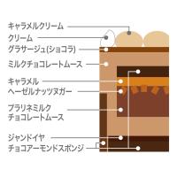 香ばしいプラリネを合わせたミルクチョコレートムースにヘーゼルナッツヌガーとキャラメルを重ね、カカオ分40%のミルクチョコレートムースでとじ込めました。