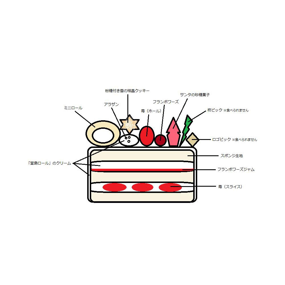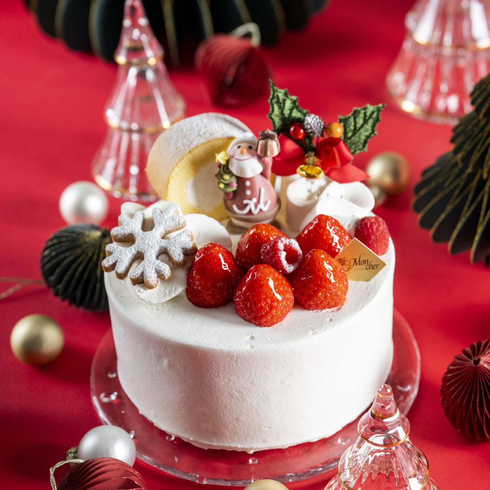 しっとりふわふわに焼き上げたやさしいくちどけの生地に、生乳のコクと香り広がる「堂島ロール」のクリームを絞り、真っ赤に色づいたいちごやミニサイズの「堂島ロール」で華やかにデコレーションしました。真っ白な雪が降り積もるいちごの森で、サンタさんが支度する…。そんな温かいストーリーに溢れた、モンシェールの定番クリスマスケーキです。