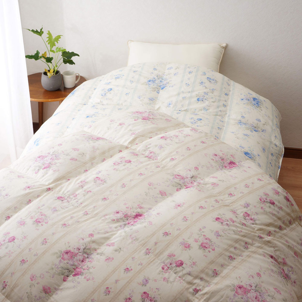 羽毛掛けふとん:ブルー/ピンク、掛けカバー:ブルー