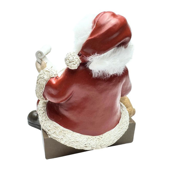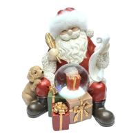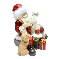 ほっこり笑顔のサンタさんとかわいい子犬、そして中央にはギフト入りスノードーム。手元のリストや羽ペンなど、細部にまでこだわったデザインが魅力的。お部屋に飾るだけであたたかなクリスマスムードを演出してくれます。ポリレジン素材でしっかりとした存在感があります。