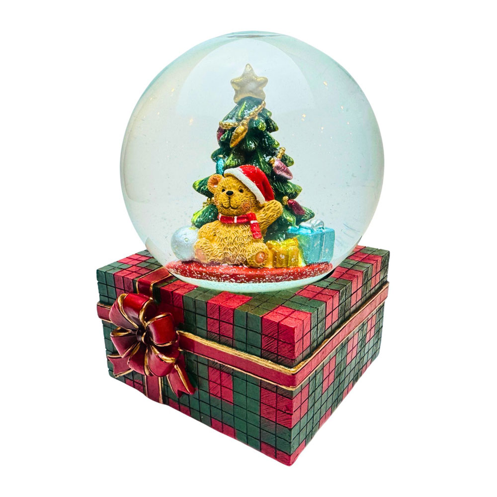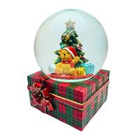 サンタ帽をかぶったクマが、プレゼントとツリーに囲まれた可愛らしいスノードーム。まるで絵本の1ページのような温かなクリスマスシーンが広がります。ギフトボックスを模した土台は、赤とグリーンのチェック柄にリボン装飾を施し、置くだけで華やかな存在感。手巻き式のオルゴールが奏でるメロディは、お部屋に心地よいひとときをもたらしてくれます。