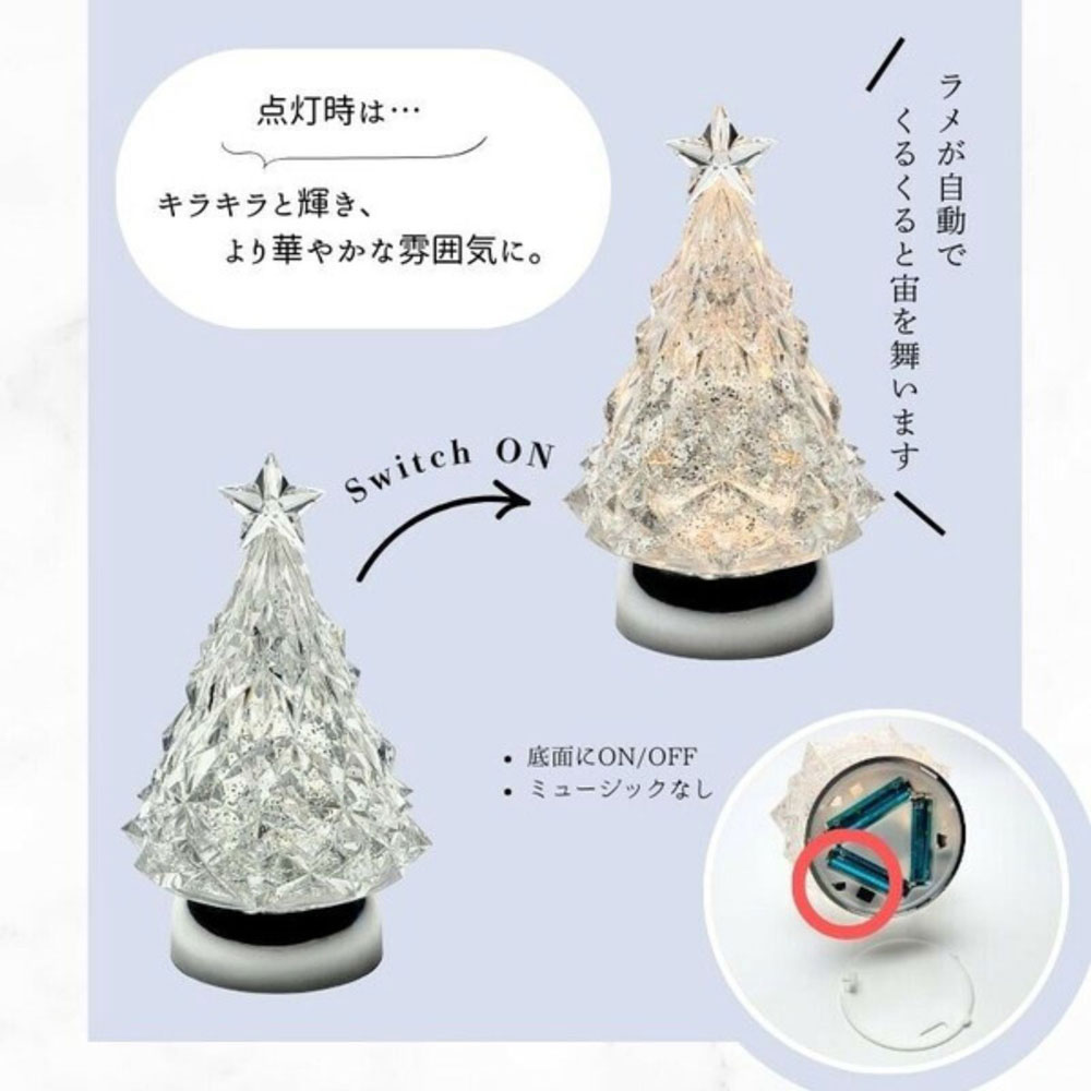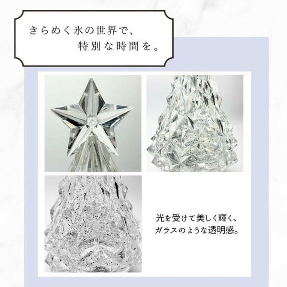 まるで氷のようなツリーライトスタンドデコレーション。水の中でグリッターがきれいに舞い、とても美しい空間を演出してくれます。薄暗い中ライトを付けると、とても癒されます。