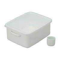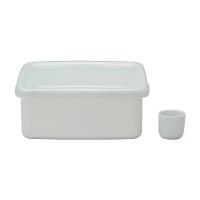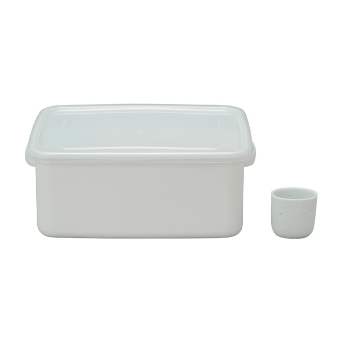 琺瑯素材で酸や塩分に強く、少し深さのあるシンプルな角形で使い勝手のよいぬか漬け容器です。乾燥ぬか2kgでつくるぬか床用で、両取っ手付きなので、冷蔵庫からの出し入れや持ち運びも安心です。冷蔵庫での低温保存で、一年中安定したぬか漬けが楽しめます。ぬか床の水分調節用の水取器(磁器製)が付属しています。