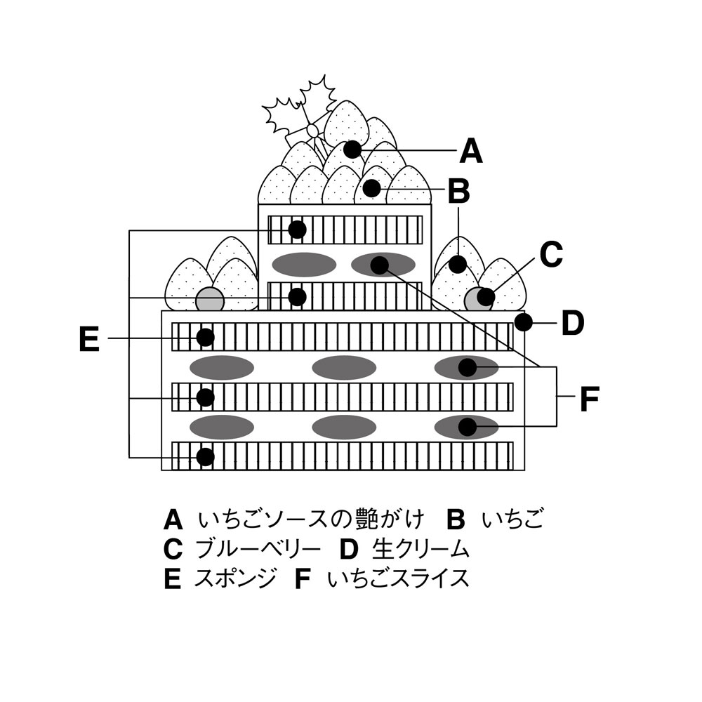 岡山県産の小麦粉(希少なふくほのか)を使用してふんわりと焼き上げたスポンジ、口溶けの良い生クリームは2種をブレンドしたオリジナル配合で苺ときめ細かいスポンジとのバランスが取れるよう甘さ控えめに仕上げています。白十字自社農園で収穫したフレッシュな完熟苺をふんだんに使用。2段のケーキのスポンジにはそれぞれ苺スライスを2層にサンドしています。