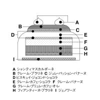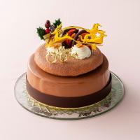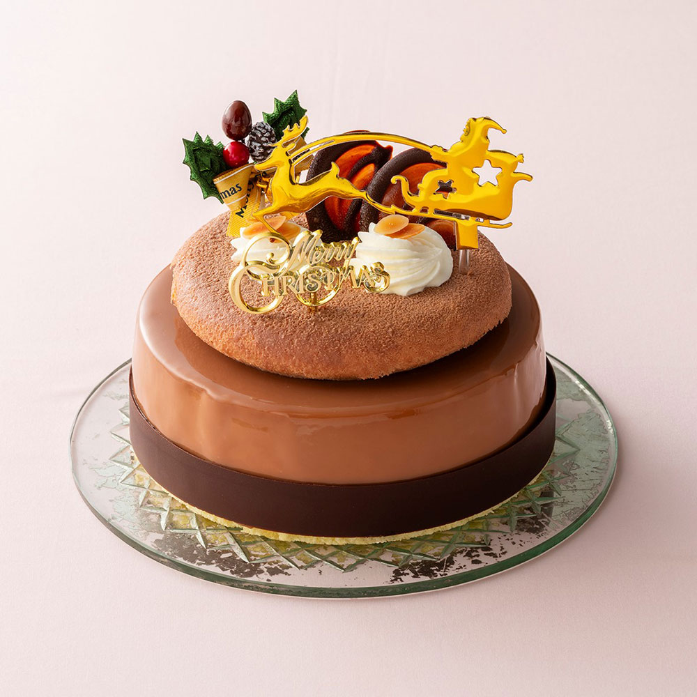 芳醇なコーヒーチョコムースの中に、岡山おひさまファームの香り高く完熟したバナナを使ったムースとジュレを閉じ込めました。香ばしいアーモンドプラリネのムースが味に深みを加え、三層のハーモニーが楽しめる贅沢なクリスマスケーキです。