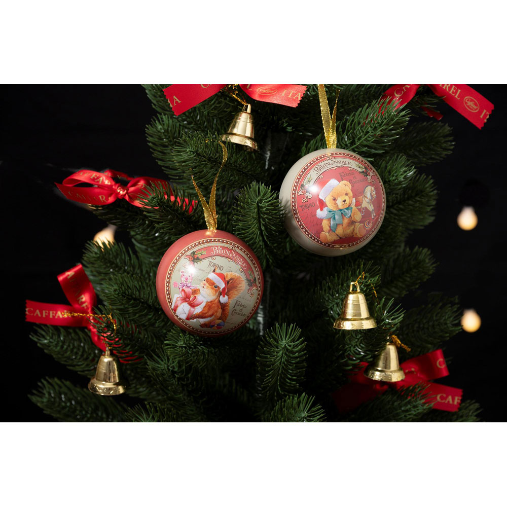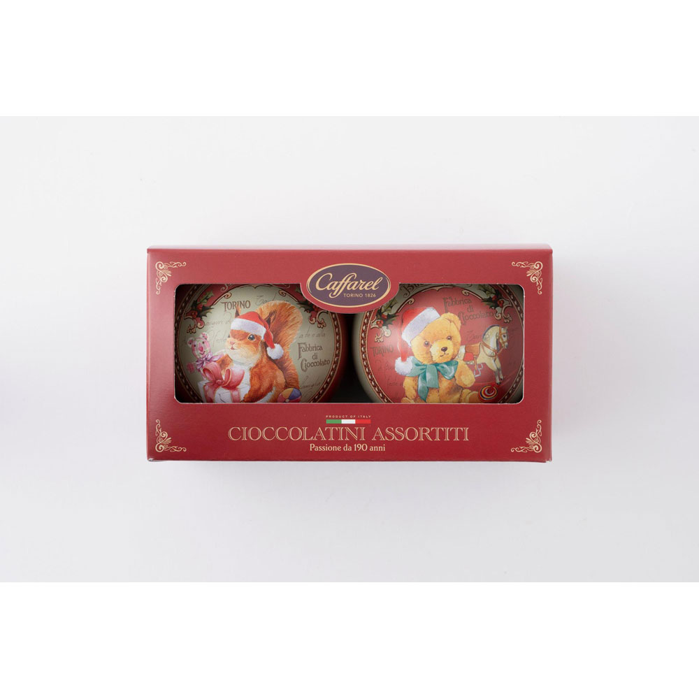 イタリアのアンティークショップに並ぶ絵本をイメージし、カファレルの仲間たちが織りなす心温まるクリスマスの物語をデザインに落とし込みました。ミニハートやジャンドゥーヤが入ったオーナメント缶。